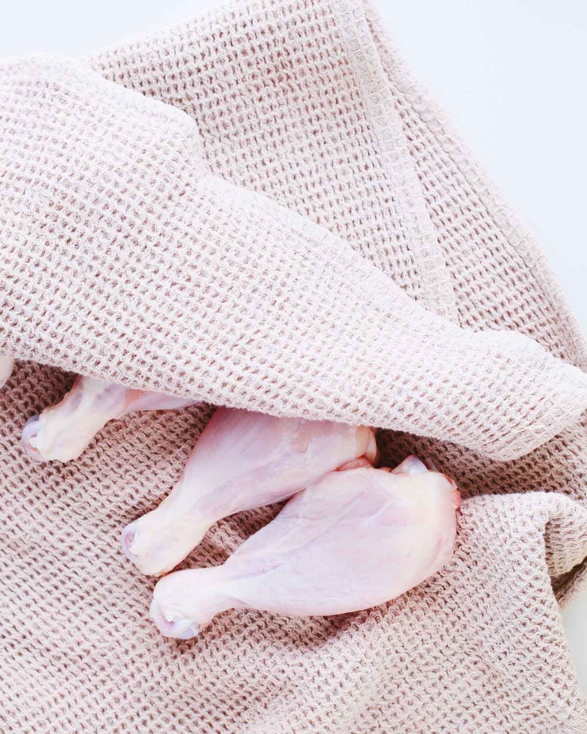 - Excess moisture is the enemy here, so make sure you pat dry the chicken legs before coating it.