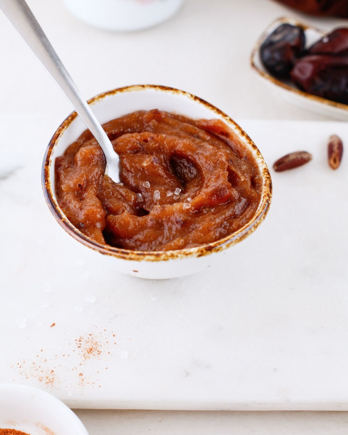 - Reserve a few tablespoons of the date soaking water and blend in a splash at a time to loosen the sauce if it’s too thick.