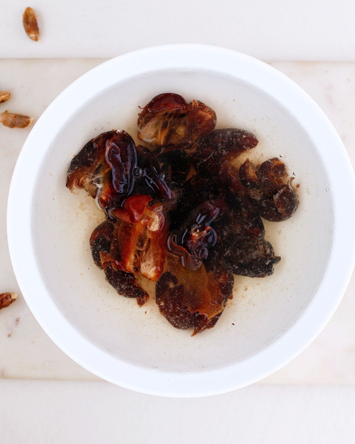 Step 1: Soak dates in a bowl of hot water for 10-15 minutes to soften them.