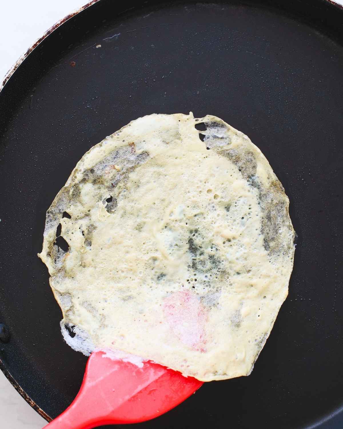 - Cook the egg white tortillas on low heat, and take them off the pan as soon as they appear done. This way, they'll still be nice and soft.