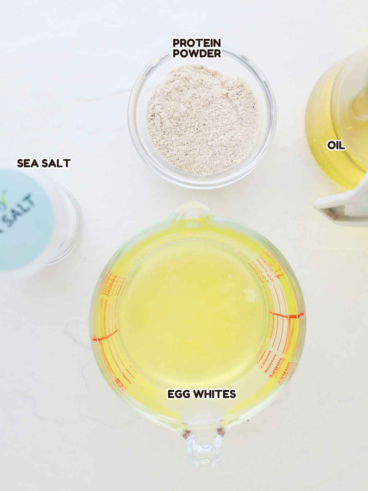 - In a jar, combine the egg whites, protein powder and seasonings.