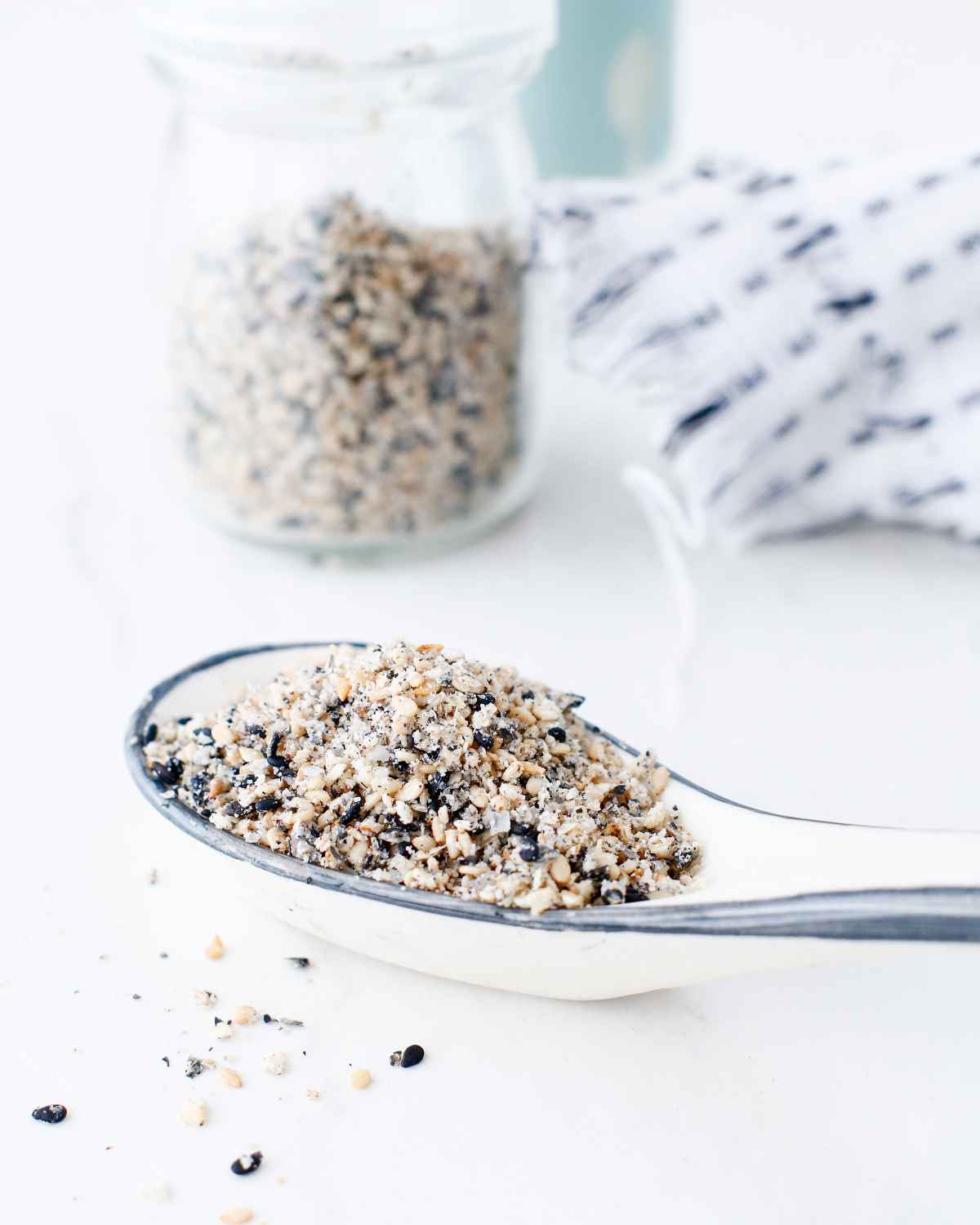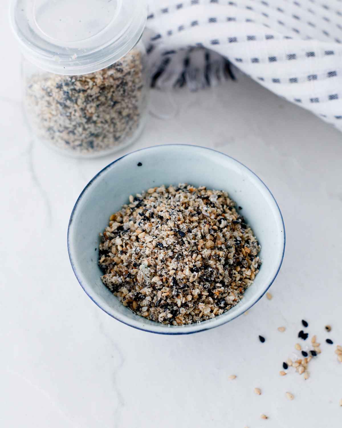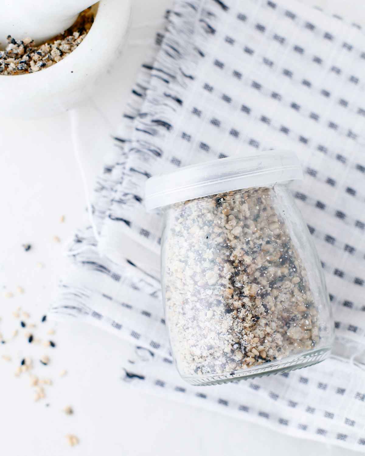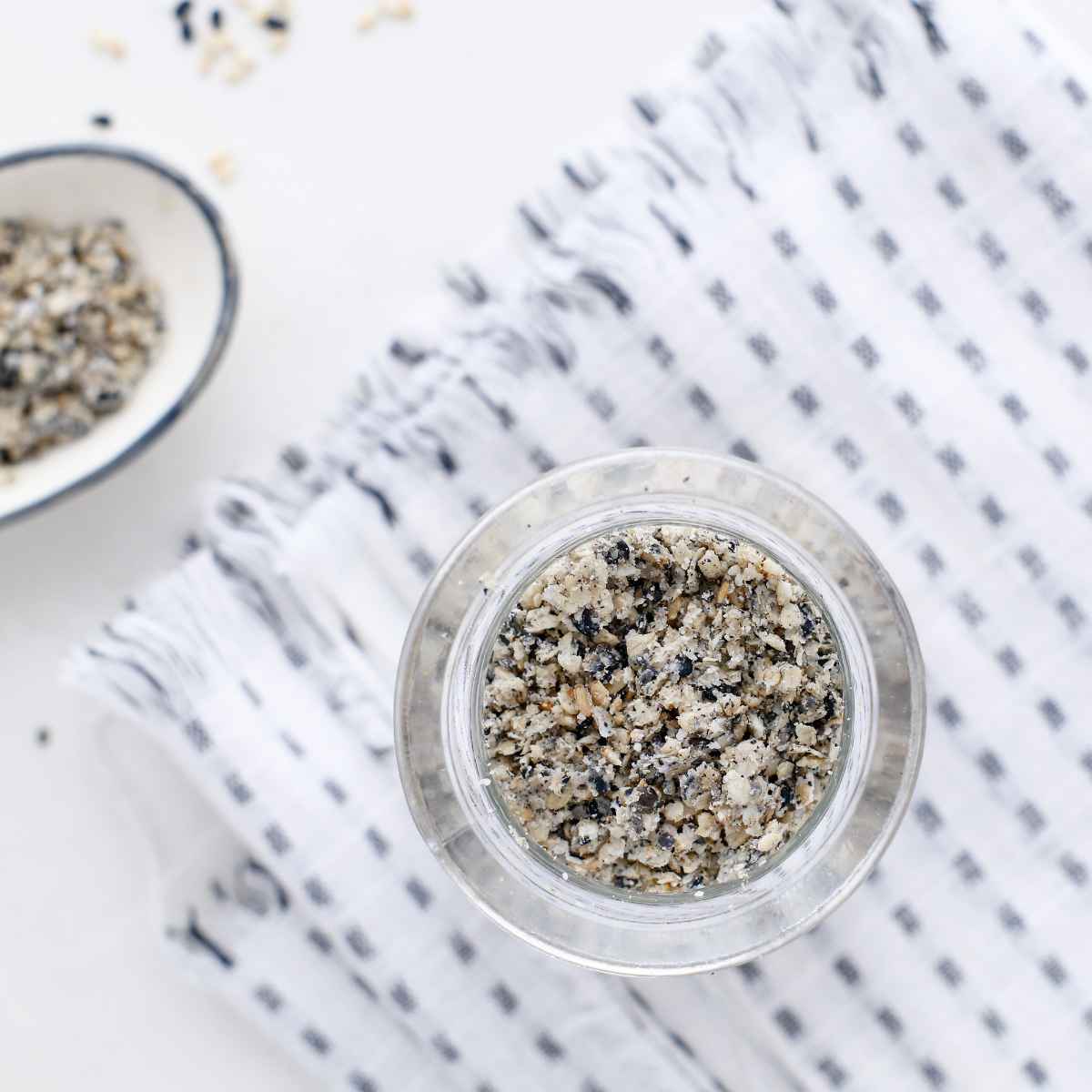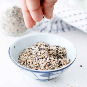 Sesame seeds are lightly roasted and teamed up with some sea salt to make a simple and versatile condiment that you can make and store for months, and use to season a TON of recipes- just like my homemade lemon pepper seasoning.