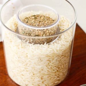 You can store the leftover rice seasoning for up to 3 months in a clean, airtight container at room temperature. Make sure you keep it in a cool, dark place away from direct sunlight.