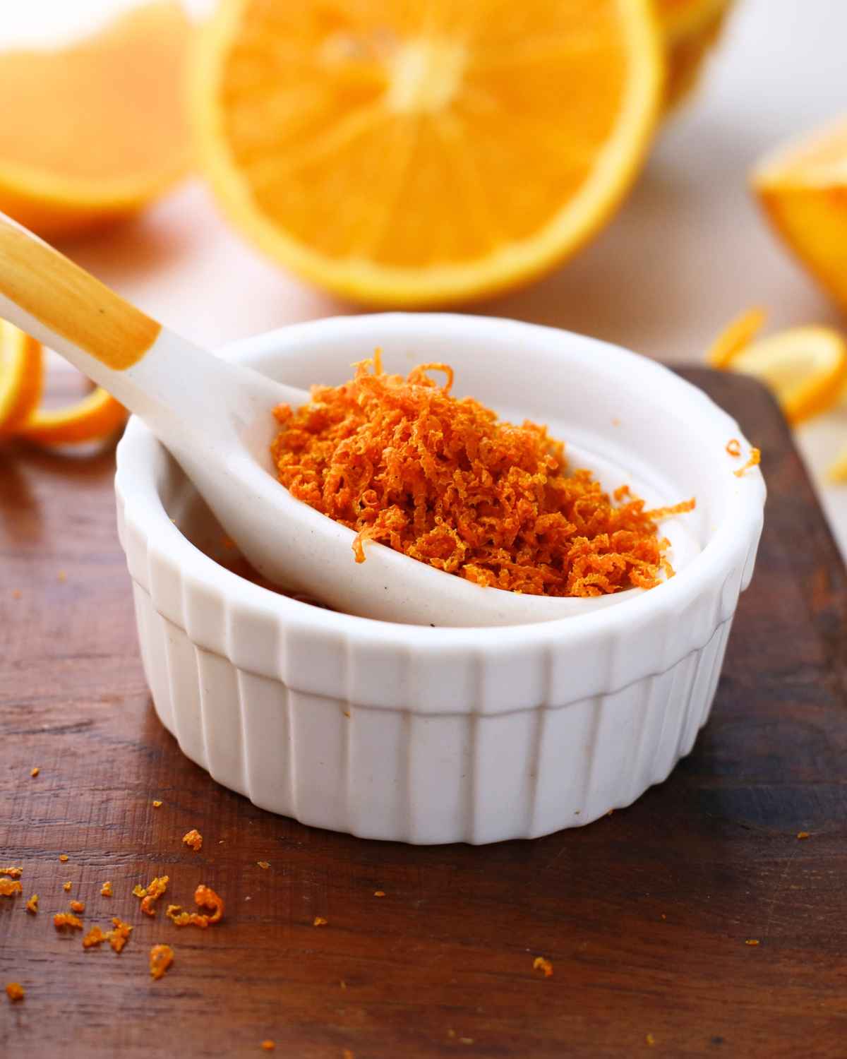 Transfer your leftover homemade orange zest to an airtight container and refrigerate or store at room temperature. Without moisture, it can stay good for up to 3 months.