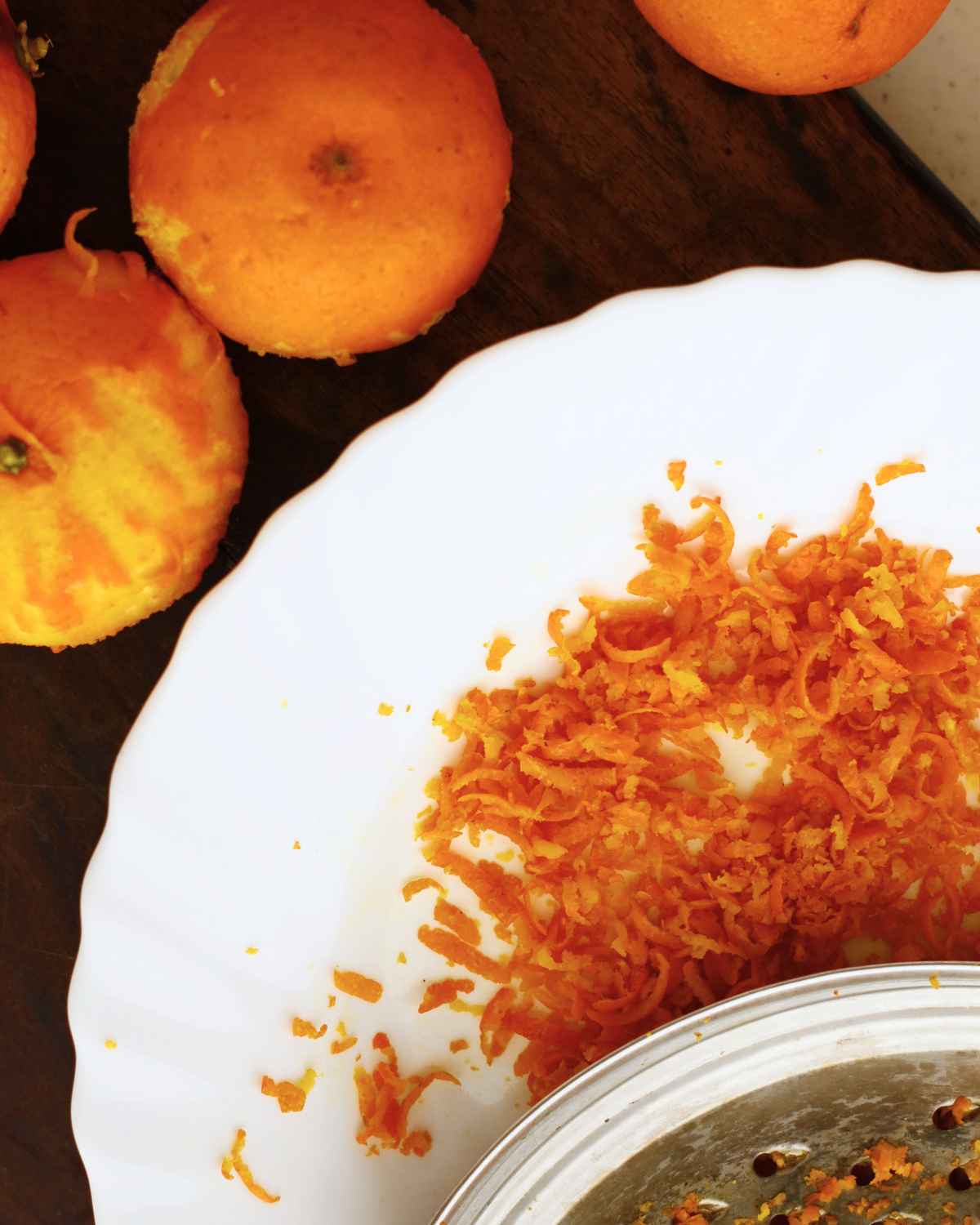 • Use a microplane to gently zest the oranges.