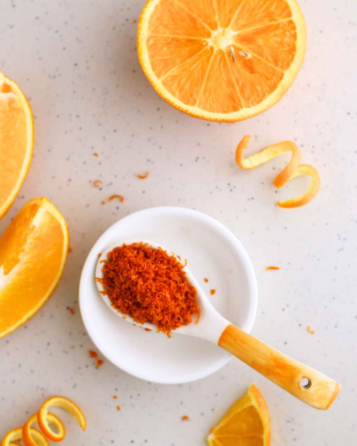 This tangy and refreshing orange zest can be used in a ton of ways! I like adding it to my simple salad dressings, especially my lemon poppy seed dressing for a bit of extra zing.