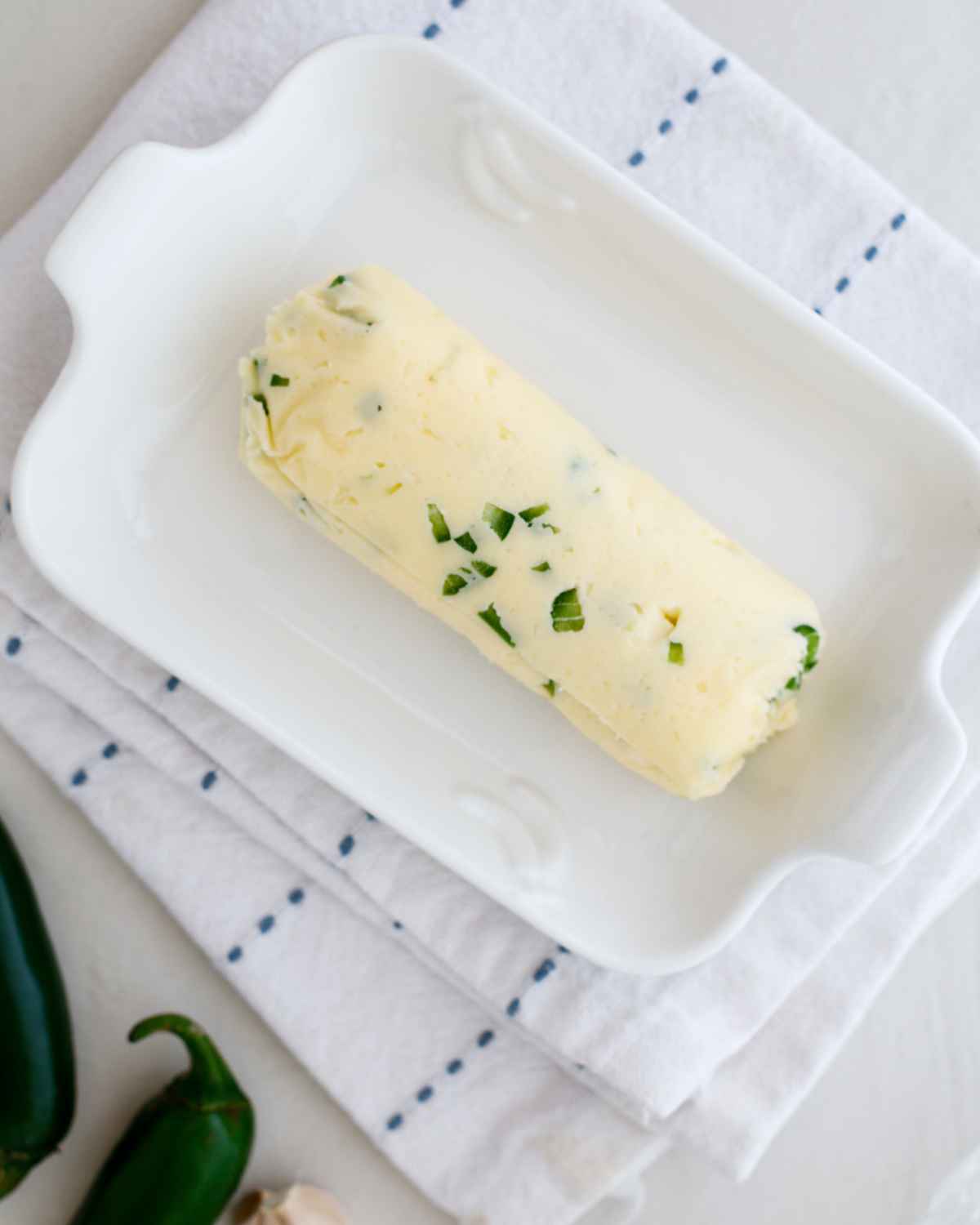 - If you don't like the chunky bits of jalapenos in the butter, you can blend the garlic and jalapenos together in a blender jar to make a smooth paste, and then fold the mixture into the butter- I did this when I made my pesto butter.