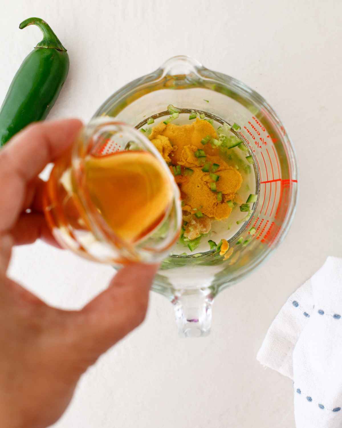 • If you don't have fresh jalapenos at hand, you can also use pickled jalapenos! They can be a bit milder, but they'll work.